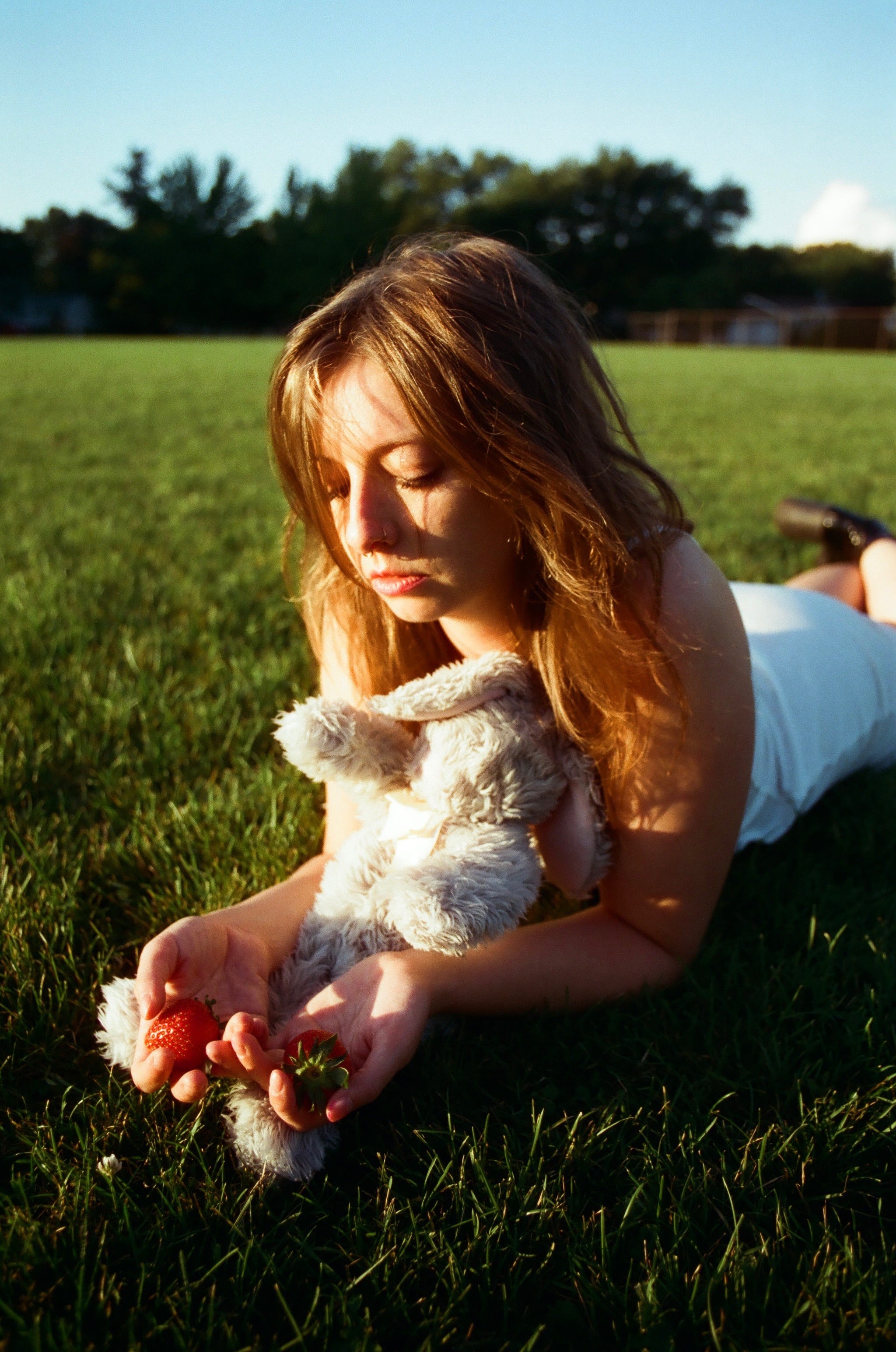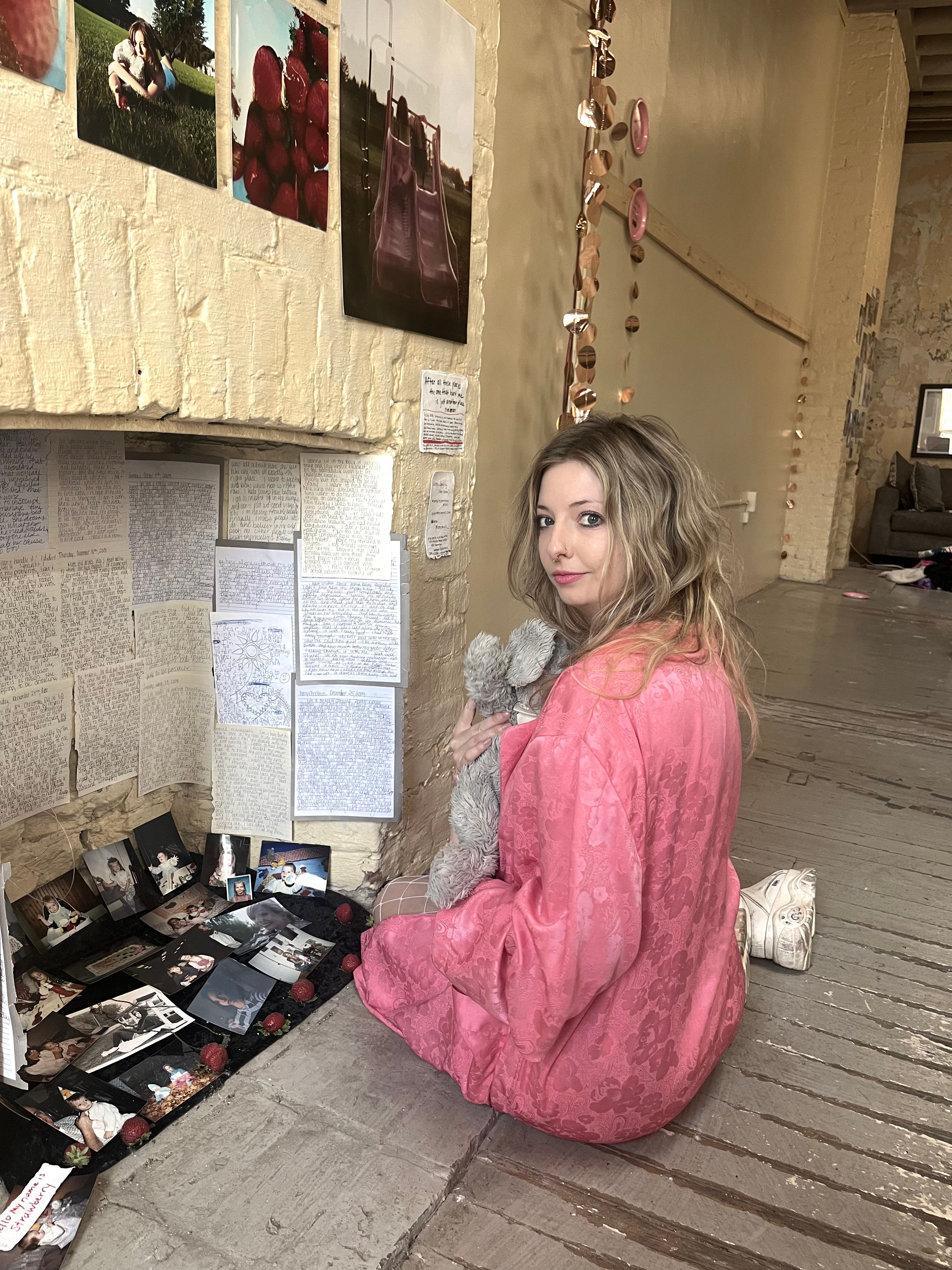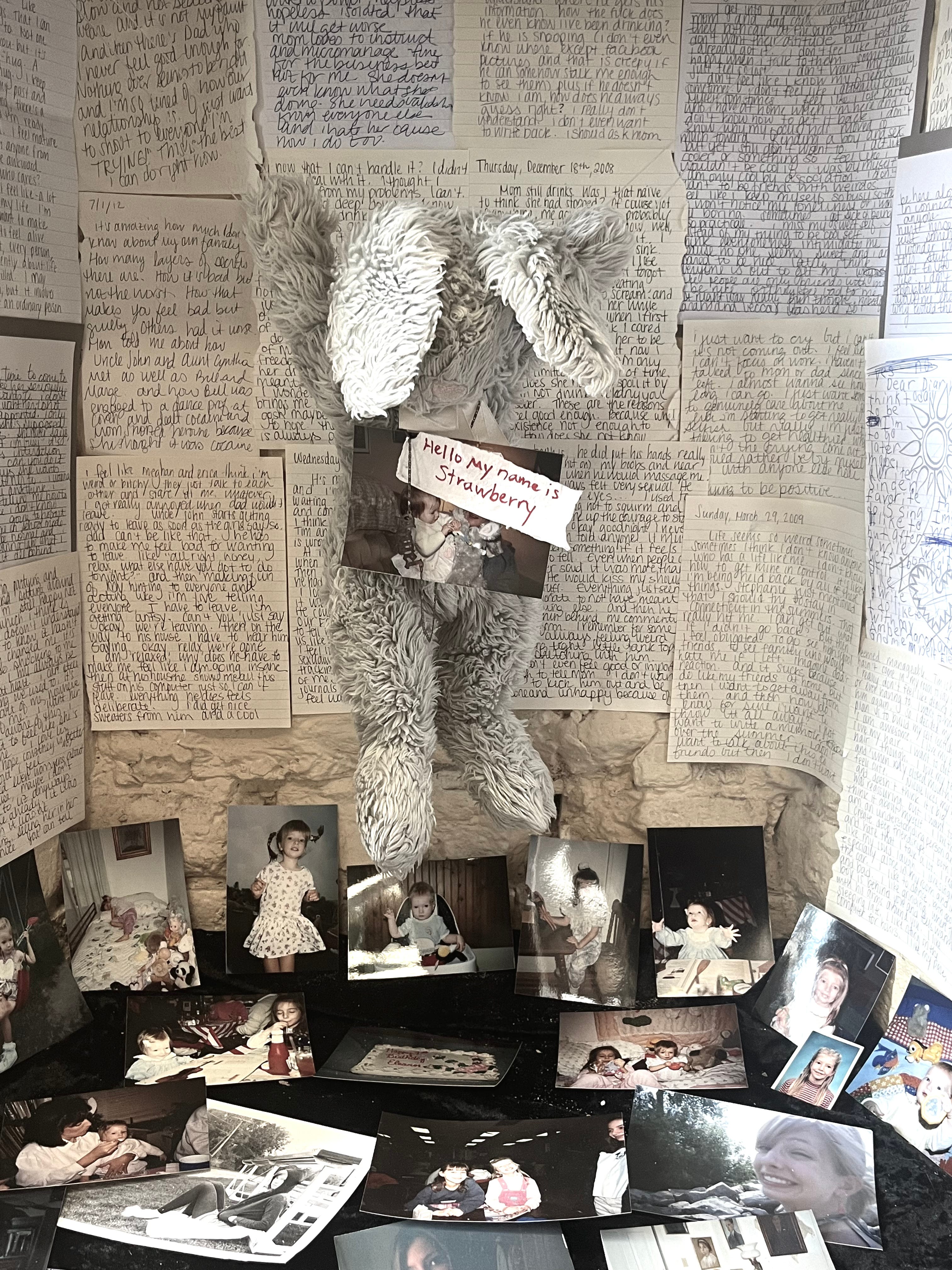 In July 2023, I returned to my hometown for the first time in seven years. Strong enough for reckoning, I visited my estranged mother at my childhood home. I retrieved many mementos, photos, journals, and lost remnants of my sanity. I rescued my favorite childhood stuffed animal, a bunny named Strawberry. A talisman for my inner child, Strawberry will now get to see the world with me.